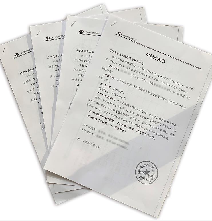 2020年1224日,遼寧久奈化工集團(tuán)股份有限公司(以下簡(jiǎn)稱遼寧久奈化工)收到本鋼集團(tuán)有限公司出具的《中標(biāo)通知書》,重防腐油漆、硝基,醇酸漆、特種油漆年采購訂單。